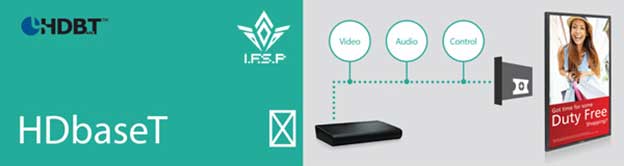 The ops port on Philips industrial monitors can be equipped with an HD based signal receiver as an option; it receives signals through the network cable cat 5/6. Transmission of full HD pictures and video and control signals is carried out through HD based signals.